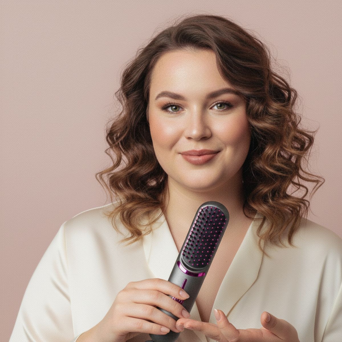 Get salon-smooth hair in minutes with this innovative 2-in-1 straightening brush. Designed for speed and protection, it combines the efficiency of a flat iron with the convenience of a hairbrush.