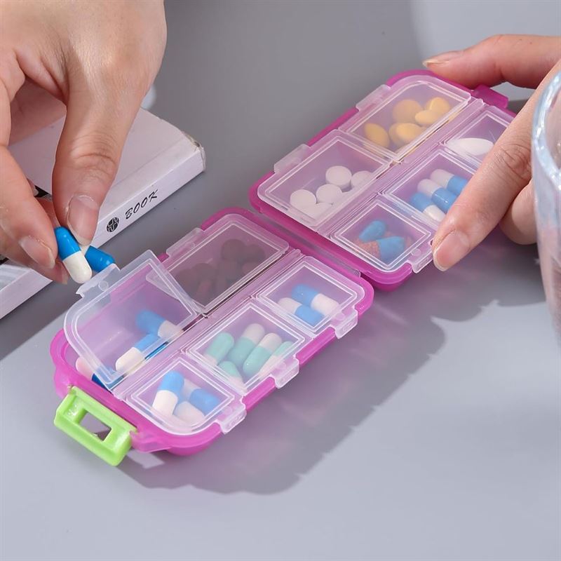 • 10 spacious compartments: Holds a variety of pills and vitamins for the whole week.